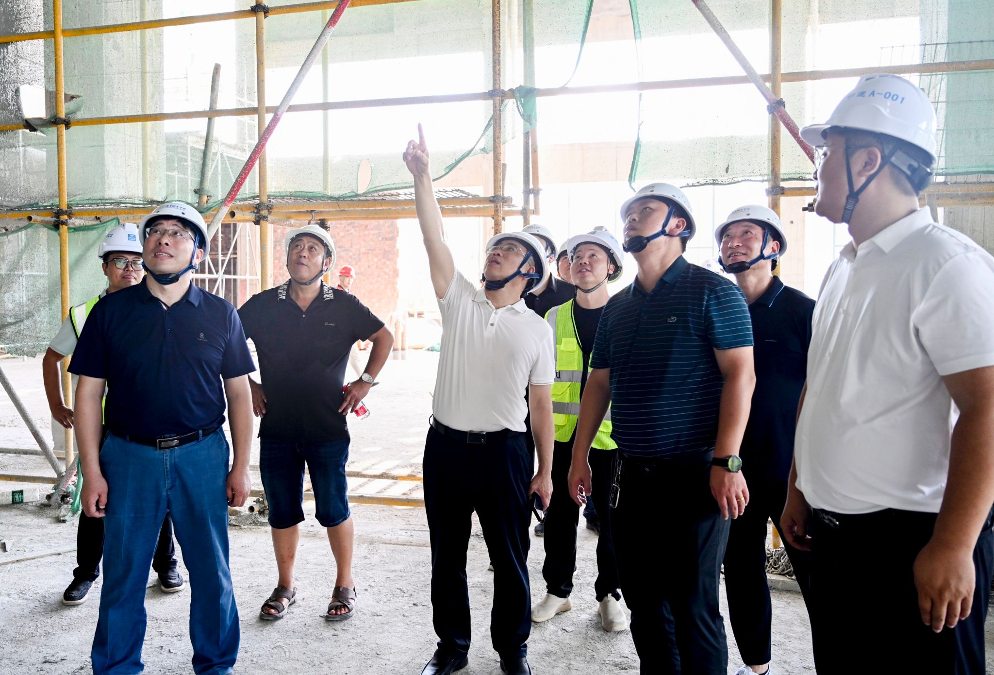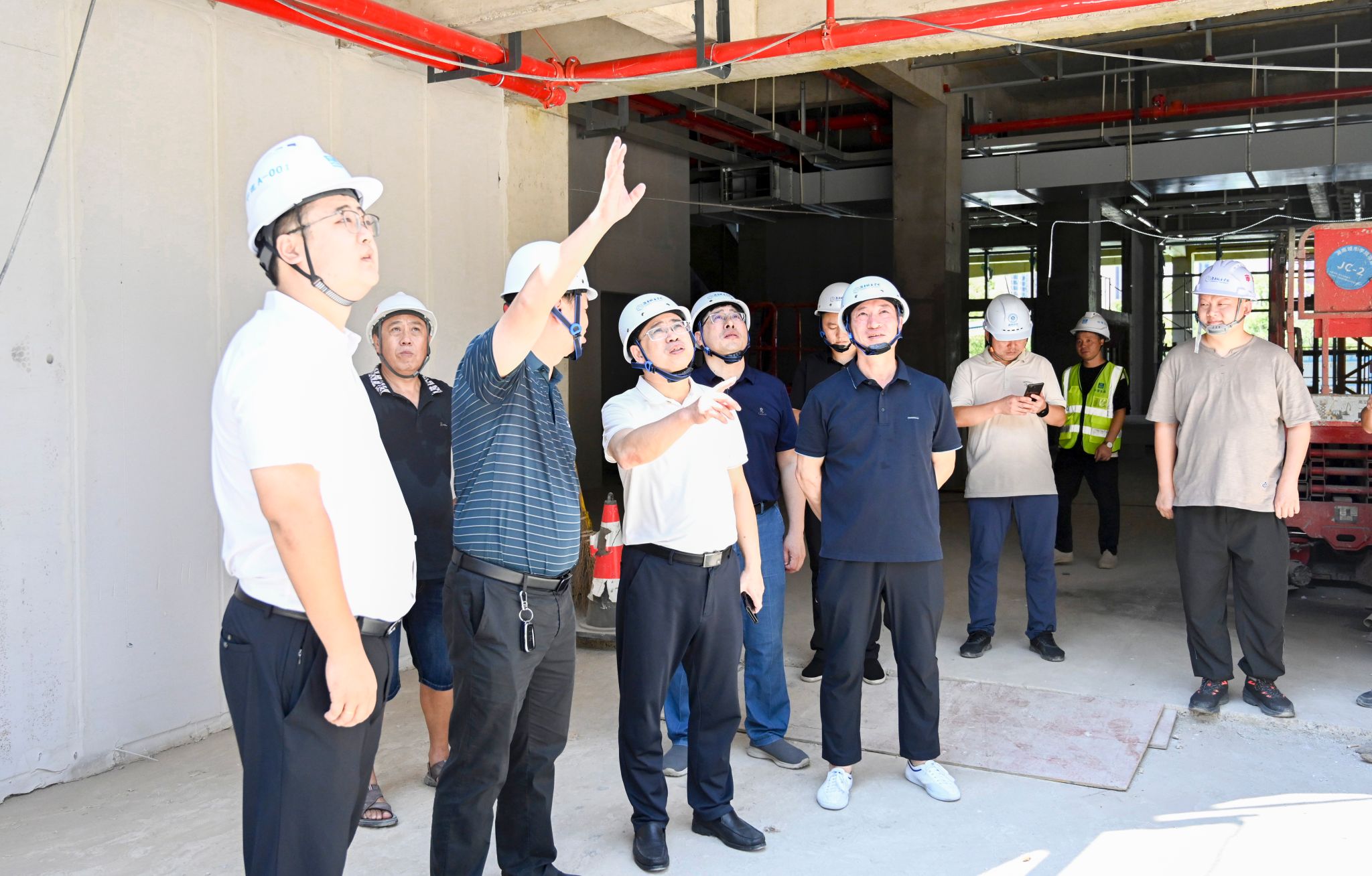 何振深入A栋产教融合大楼、B栋新文科综合实训大楼、体育教学中心等重点项目施工现场,听取相关人员对工程进展、质量管控、安全措施等方面的汇报,仔细检查现场施工情况,深入了解施工质量与施工安全防范措施。