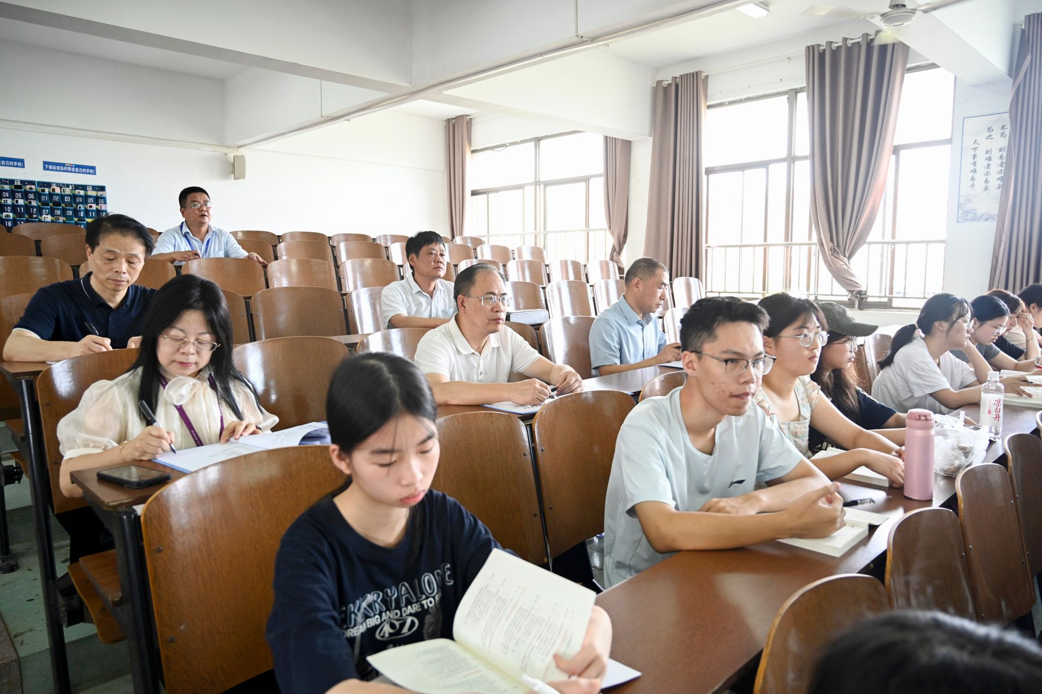 校党委书记何振、副校长徐姝深入第一教学楼,听取了马克思主义学院“习近平新时代中国特色社会主义思想概论”和“科学社会主义”两门课程,详细记录教学实况,观察学生听课状态,并在课间与教师交流,就教学方法与技巧提出具体建议。