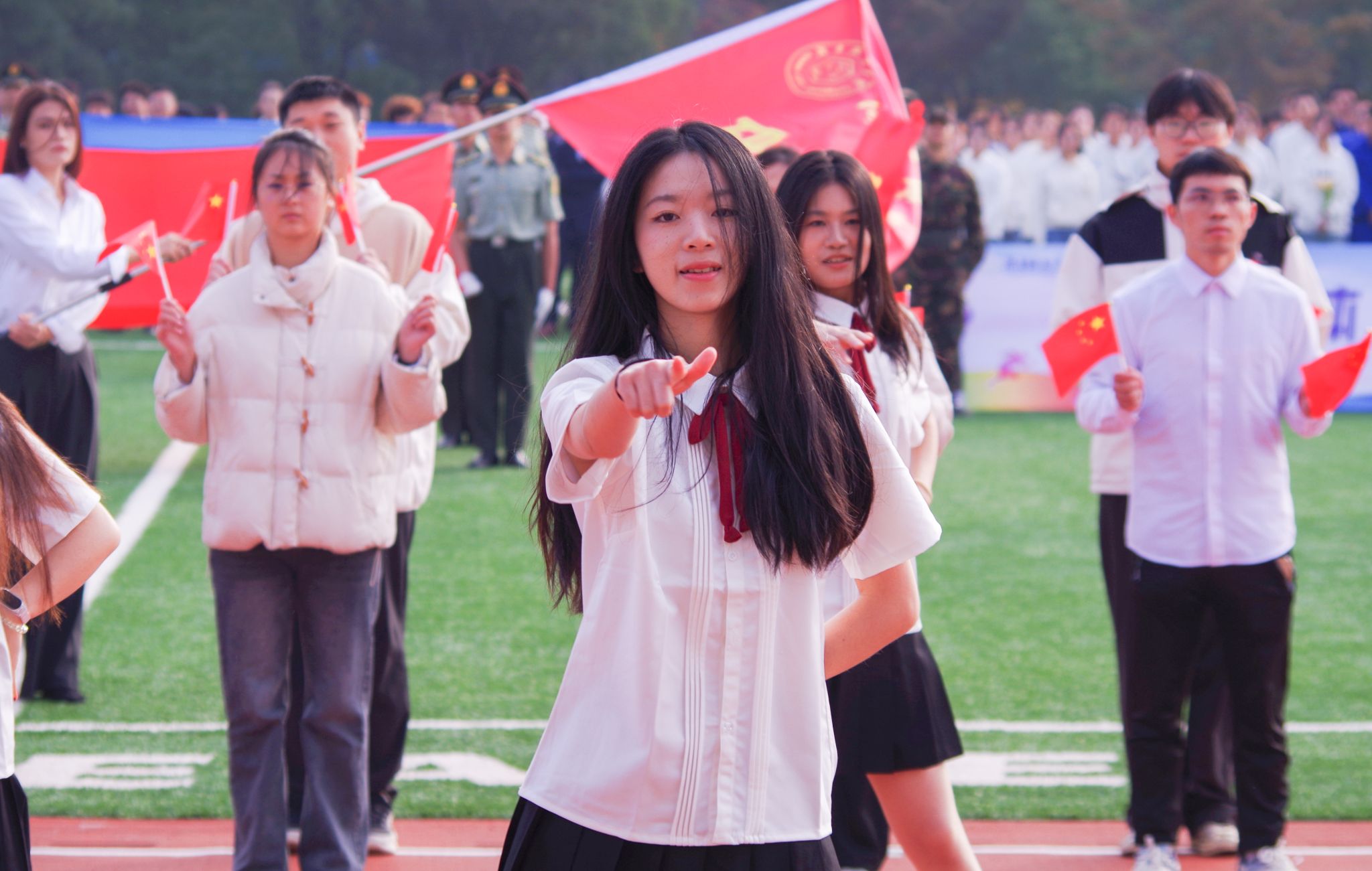 副校长徐姝发表了热情洋溢的致辞。她表示,我校大力推进体育课程改革,广泛开展学生课外体育活动,营造了良好的校园体育文化氛围,并在体育竞赛方面取得了不错成绩。希望参加本次运动会的运动员们公平竞争,团结互助,朝着更快、更高、更强的目标挑战自己、超越自己,用坚韧书写青春华章;全体裁判员要恪尽职守,公平裁判,用规则守护公平正义,全力奉献一场精彩纷呈的文化体育盛会。
