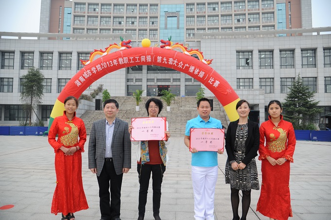 最后,经过由体育学院专业老师组成的裁判组评分,体育学院分工会获得特等奖;离退休教职工代表队获得表演奖;市政与测绘工程学院分工会、建筑与城市规划学院分工会获得一等奖;音乐学院分工会、图书馆分工会、土木工程学院分工会、机关二分工会获得二等奖;校办产业分工会、机关一分工会、机关三分工会、外国语学院分工会、化学与环境工程学院分工会、通信与电子工程学院分工会获得三等奖;唐海欧、李琳、陈燕娇、黄智、李娟、张珊、宋和明获得优秀领操员奖。