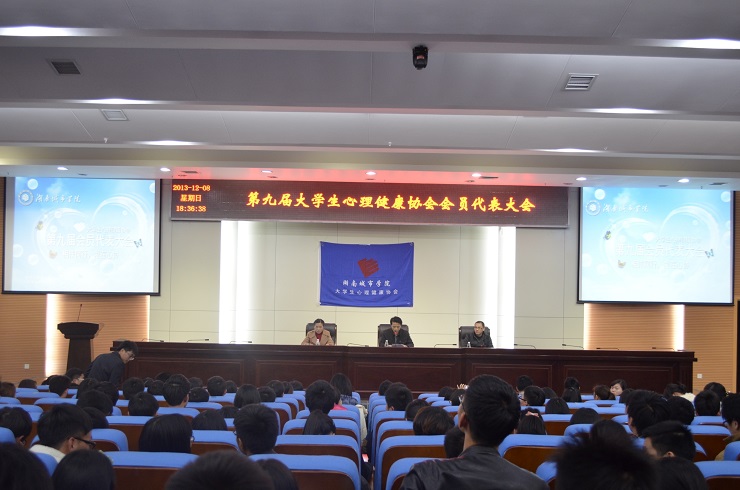 (本网讯)“相伴同行,爱在心协”,12月8日晚,我校第九届大学生心理健康协会会员代表大会暨2013年度表彰大会在逸夫图书馆报告厅举行。学生处、团委相关负责人及各学院心理辅导员老师,大学生心理健康协会干部、获奖同学和会员代表出席会议。