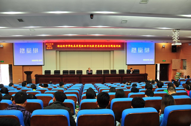 专题培训时间足额2天,安排了5堂专题报告和1部专题教育片。其中,中山大学原党委书记、国家教育咨询委员会委员李延保教授结合高校教育实践活动作了《高校内涵式发展》的专题辅导报告,他结合中管高校第一批教育实践活动的经验和成果,结合自身经验和对国内外高等教育的调查研究成果,就我国当前高等教育内涵发展中存在的共性问题、值得关注的几个全局性问题和战略布局作了鞭辟入里的分析;学校党委书记赵运林以《讲党性、重品行、作表率》为题做了专题培训,从“党性”、“品行”“表率”三方面详细解读了一名共产党员应有的可贵品质,在“为民、务实、清廉”上应起到的表率作用,同时对学校基层党组织书记提出了要求和希望;学校党委副书记、校长李建华做了《强化职业道德,建设和谐校园》的专题辅导,以职业道德的核心问题为切入点,讲授了职业道德的主要内容、建设途径,职业道德建设中的三个问题和和谐校园的构建;学校党委委员、副校长汤放华从《把握要求、整体推进,做师生员工的贴心人》入手,向师生们阐述了党的群众路线教育实践活动的要求、推进方法及学校的各项“贴心”举措;马克思主义学院副院长龚彬作了《把握新一届中央领导集体治国理政风格》专题报告。组织集中观看了中共中央党校郑权教授主讲的《保持党的先进性和纯洁性是群众路线教育实践活动的主线》教育专题片。