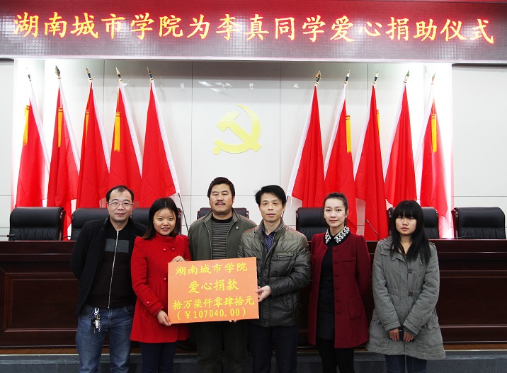 李真同学是我校市政与测绘工程学院09级学生。在学校是一位积极上进、成绩优秀的学生,2014年考上了华南农业大学的硕士研究生,正当他憧憬着自己美好的研究生生活的时候,被医院查出患了白血病,巨大的病痛和巨额的医疗费象大山一样压在了这个贫寒学子身上。所幸的是,社会没有忘记他,母校没有忘记他,社会各界纷纷伸出了援助之手。学校得知李真的情况后,校党委书记李建华亲自带领学生处、宣传部、市测院相关负责人到医院看望了他,为他奉献爱心,为他加油鼓劲。消息传到学校后,广大同学纷纷捐款相助。在短短时间内,又募集到十万七千余元善款。真正体现了城院学子团结一心,守望相助的精神。