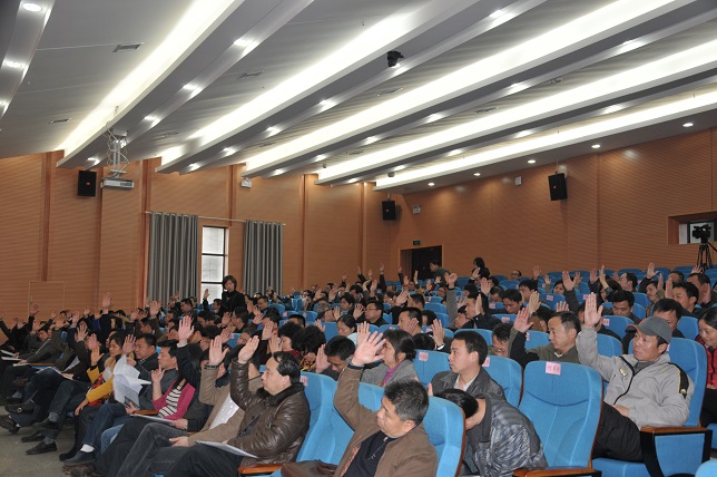 与会代表举手表决大会决议