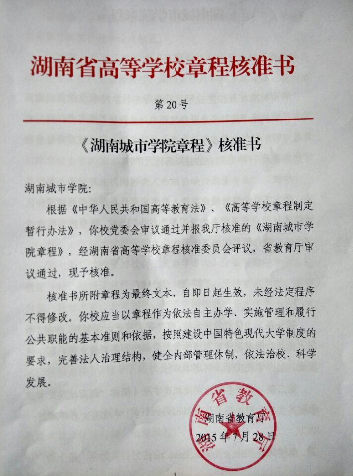 (本网讯)经湖南省高等学校章程核准委员会评议, 7月 28日 ,湖南省教育厅审议通过了《米兰平台章程》,章程于核准之日起正式生效。
