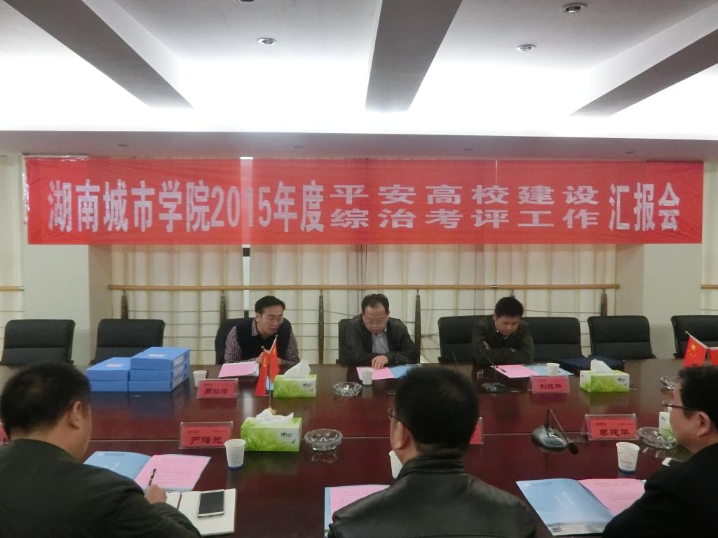 校长李建奇向考评组详细汇报了米兰平台2015年度“平安高校”建设及综合治理工作,以及学校在维稳综治安全工作中的做法和措施。他在汇报中着重指出,2015年学校维稳综治安全工作主要以“平安高校”建设为载体,以创新工作方式为手段,专注做好维稳、消防、治安等基础工作。与此同时,学校还深入开展了突发事件处置、校园传销整顿、校园交通整治等重点工作,为学校创造良好的育人环境,也为教育事业的持续健康发展提供了保障。