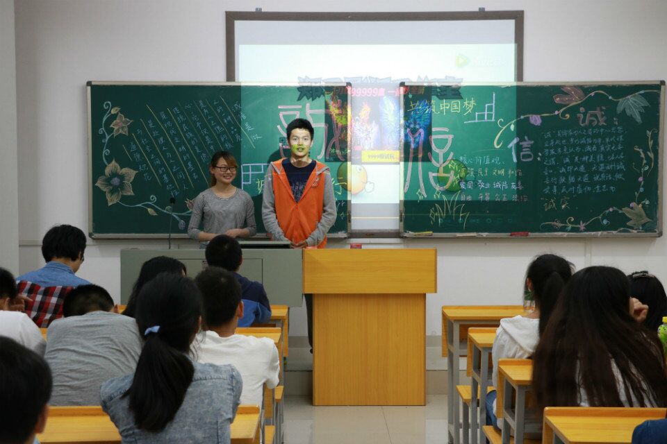 5月17日晚,该院大一至大三年级34个班级分别举办了“诚信伴我行,共筑人生梦”主题班会。班会形式丰富、主题鲜明,学生们围绕“诚信考试”、“诚信做人”主题,以自己的切身体会阐释着对“诚信”二字的坚守与追求。