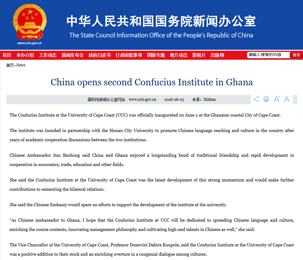 (本网讯) 加纳当地时间6月2日上午,我校与加纳海岸角大学合作创办的孔子学院正式揭幕。这也是我省二本高校首次在国外设立孔子学院,受到了中央、省内媒体以及加纳当地媒体的广泛关注。