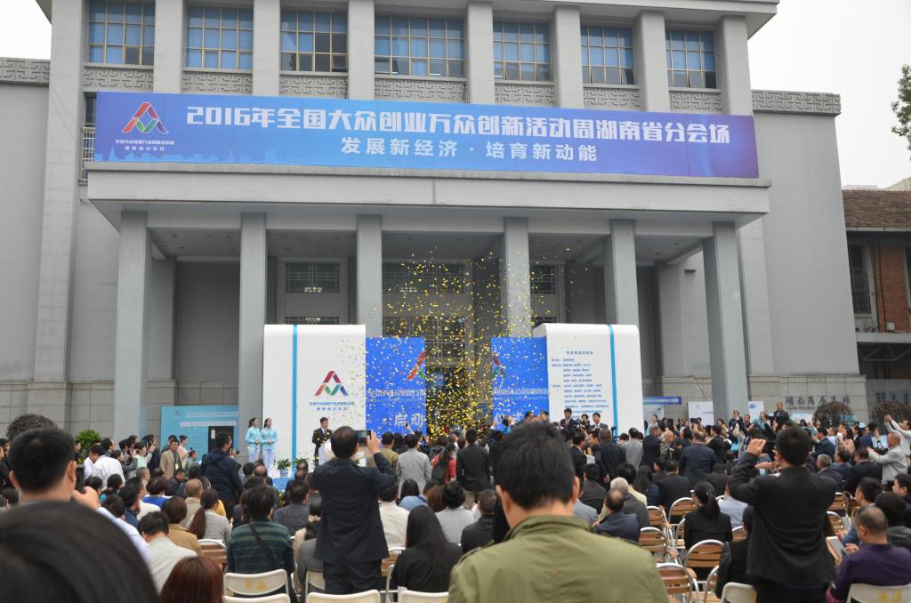 (本网讯)10月14日上午9点,2016年全国大众创业万众创新活动周湖南省分会场在湖南省展览馆举行启动仪式,湖南省委常委常务副省长陈向群出席启动仪式。作为活动周主要内容之一的“双创”成果展同时开幕,我校送展的“米兰平台众创空间”和“米兰平台多自由度智能机械手”两个项目在成果展上展出。