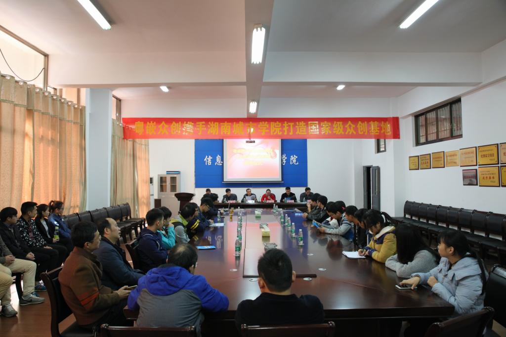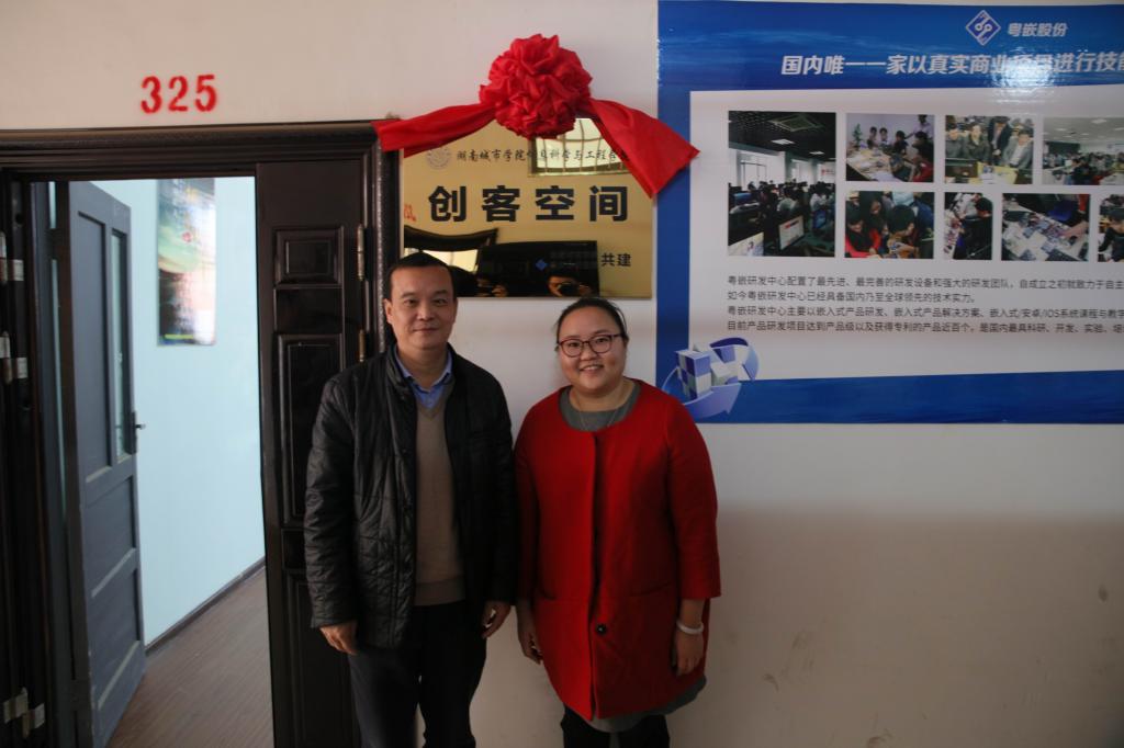 (本网讯)2016年11月11日上午10时,粤嵌众创携手米兰平台打造的国家级众创基地揭牌仪式在信息楼326会议室隆重举行。副校长雷存喜,教务处负责人,信息科学与工程学院党政班子成员,粤嵌股份湖南分公司总经理朱容、技术部总监周龙、运营总监常红英,信息科学与工程学院教师代表及学生代表参加了此次揭牌仪式。