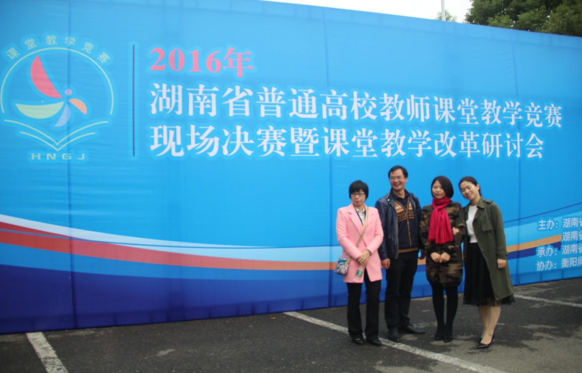 (本网讯)由省教育厅和教育工会联合主办的2016年湖南省普通高校教师课堂教学竞赛决赛于近日在衡阳师范学院落幕。我校四位教师进入决赛,获得了优异成绩。其中土木工程学院周昭明老师讲授的《交通运输经济学》、化学与环境工程学院王姣亮老师讲授的《物理化学》、通信与电子工程学院张光富老师讲授的《大学物理》荣获一等奖,城市管理学院谢征老师讲授的《人力资源管理》荣获二等奖。周昭明、王姣亮、张光富老师被授予“湖南省普通高校教学能手”荣誉称号,我校同时获得“优秀组织奖”。