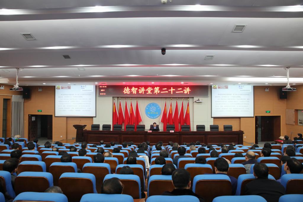 (本网讯)11月20日下午,学校在逸夫图书馆报告厅举行德智讲堂第二十二讲,邀请我校党委书记罗成翼教授作了题为“建设一支与高水平大学相适应的干部队伍”的专题报告。在家的校领导,全校副科级以上干部参加了报告会。报告会由校长李建奇教授主持。