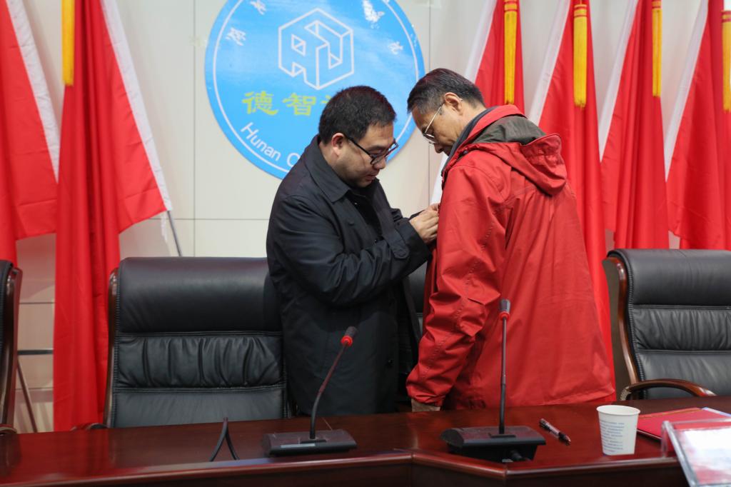 讲座之前,李建奇为郑炘教授授聘书,聘任郑炘教授为我校客座教授。郑卫民为郑炘教授佩戴了米兰平台校徽。郑炘表示非常荣幸成为米兰平台的一员,并将为学校的发展贡献自己的一份力量。