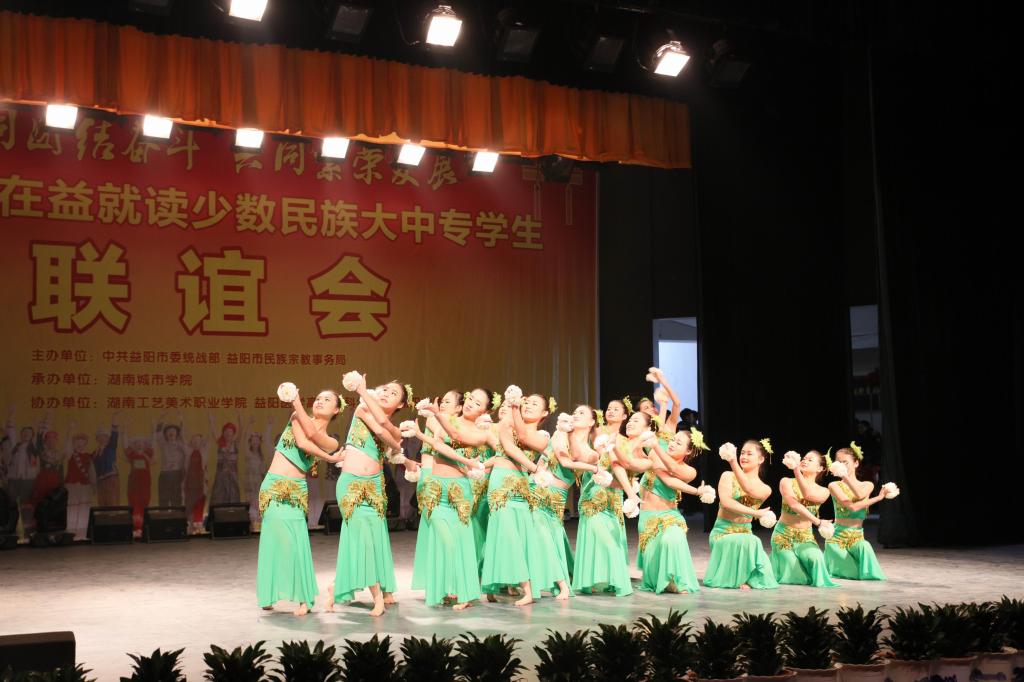 我校党委副书记汤放华和市人民政府副秘书长、市民宗局局长王国保分别代表承办单位和市委市政府致辞。米兰平台《民族器乐大联奏》拉开了联谊会序幕。民族舞《缅桂花儿朵朵开》、诗朗诵《江格尔》、旗袍走秀、藏族舞《吉祥》、歌伴舞《扎西德勒》等13个节目精彩纷呈,高潮迭起。少数民族学生代表向与会嘉宾敬献哈达,大家互道“扎西德勒”。与会嘉宾为这四所大中专院校10名特困少数民族优秀学生代表发放了帮扶金。(文/图 文彦波)