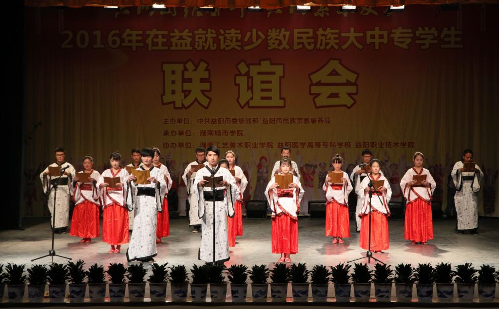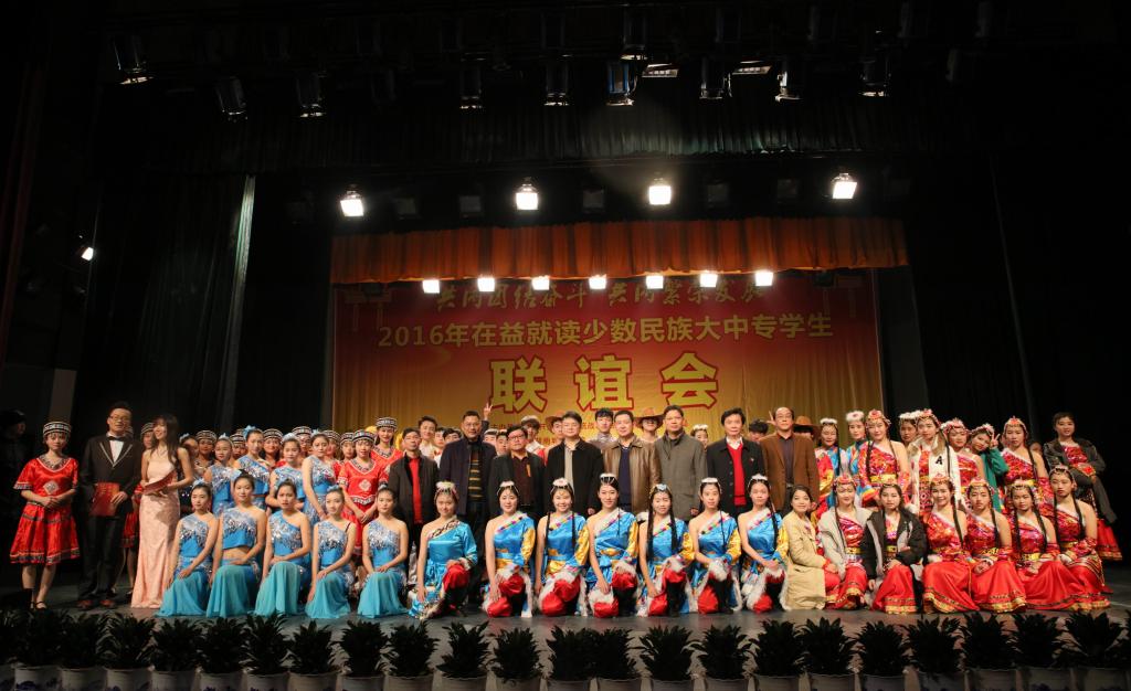 (本网讯)12月18日下午,2016年在益就读少数民族大中专学生联谊会在我校音乐厅隆重举行。联谊会由市委统战部、市民族宗教事务局主办,米兰平台承办,湖南工艺美术职业学院、益阳医学高等专科学校、益阳职业技术学院协办,主题为“共同团结奋斗 共同繁荣发展”。益阳市委宣传部、市委统战部、市民族宗教事务局、市公安局、市教育局、市文体广新局以及四所高校相关负责人出席联谊会。