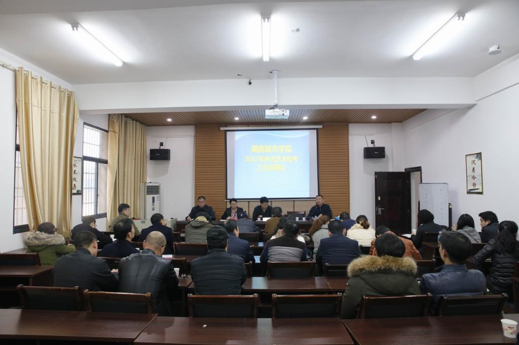 (本网讯)1月4日下午,学校在第二办公楼303会议室召开了2017年外省艺术专业校考工作部署会。党委副书记汤放华、纪委书记姚春梅,纪委、监察处,计划财务处、招生就业处、音乐学院、美术与艺术设计学院有关领导及招生工作全体人员参加了会议。会议由汤放华主持。