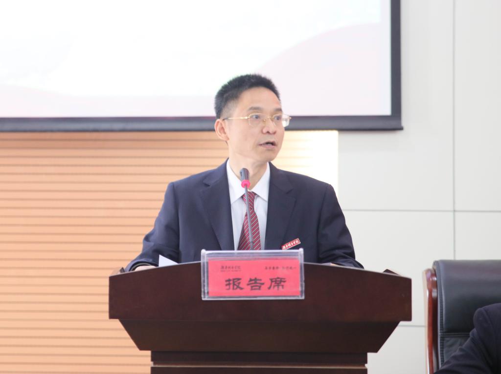 报告强调,2017年是学校实施“十三五”发展规划的第二年,是全面深化综合改革、全面推进“双一流”建设的关键之年,改革将进一步由局部向整体、由表层向深层推进,我们必须以高度的责任意识和担当意识直面困境、破解难题。坚持立德树人、内涵发展,认真落实全国和湖南教育工作会议精神和学校第三次党代会的工作部署,按照《湖南省全面推进一流大学和一流学科建设实施方案》部署,围绕落实学校“十三五”发展规划,瞄准“双一流”,争抓项目、深化改革、精细管理、提质增效,扎实推进特色鲜明的高水平应用型大学建设,以实际行动迎接党的十九大胜利召开。