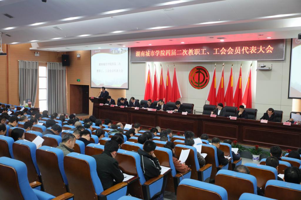 (本网讯)3月31日上午9点,学校第四届二次教职工、工会会员代表大会在图书馆报告厅隆重举行。131名正式代表、特邀代表和列席代表出席会议。校领导罗成翼、李建奇、夏宏宇、姚春梅、郑卫民、刘辉煌、何振、雷存喜、谭献良、罗新湘、范志超在主席台就座。大会由副校长夏宏宇主持。