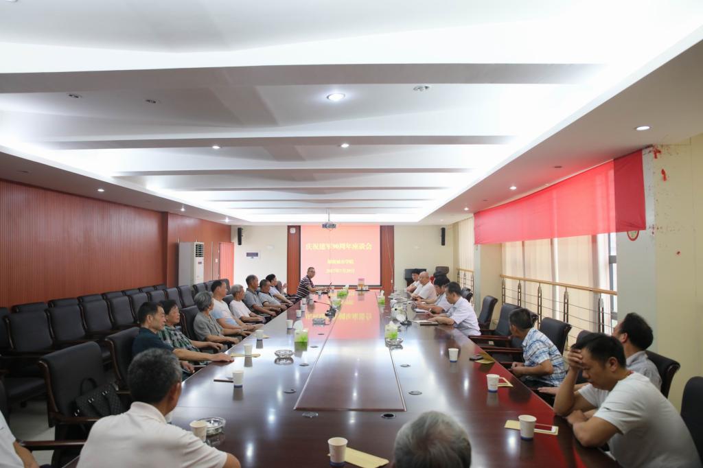 (本网讯)7月29日上午,学校在办公楼一会议室举行庆祝建军90周年座谈会。学校党委书记、国防工作领导小组组长罗成翼出席会议并讲话,23位学校退伍与转业军人代表,武装部、人事处负责人参加了会议。会议由副校长夏宏宇主持。
