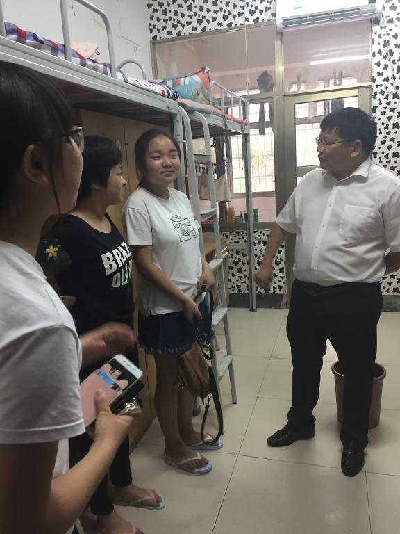 之后,罗成翼一行深入定向师范学生宿舍,实地察看了学生公寓16栋、13栋部分寝室,了解中职师范生的住宿安排与生活情况。罗成翼真切地询问了部分师范生户籍所在地、生活费用、家庭经济状况及对新的学习生活环境的感受等,勉励他们要尽快适应学校生活,从学习、生活、纪律、道德等方面严格要求自我,切勿沉迷于游戏。同时,他还与贫困生及其家长亲切交谈,结合自己年少时的亲身体验鼓励该生树立良好心态、积极参加活动,好好读书回报父母,并要求学生工作处、相关辅导员多多关心与帮助这位同学。