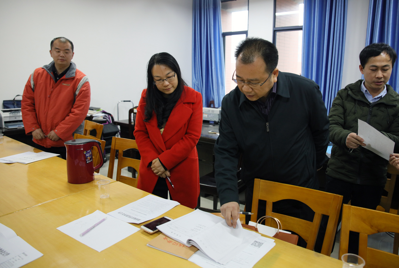 (本网讯)12月7日下午,校长李建奇率教务处、教学质量监控与评估中心等教学管理部门人员深入二级学院、系(教研室、中心)、课堂检查教研活动开展情况、实验室(中心)建设情况、理论课堂教学和实践课堂教学情况及教育实习成果汇报情况。