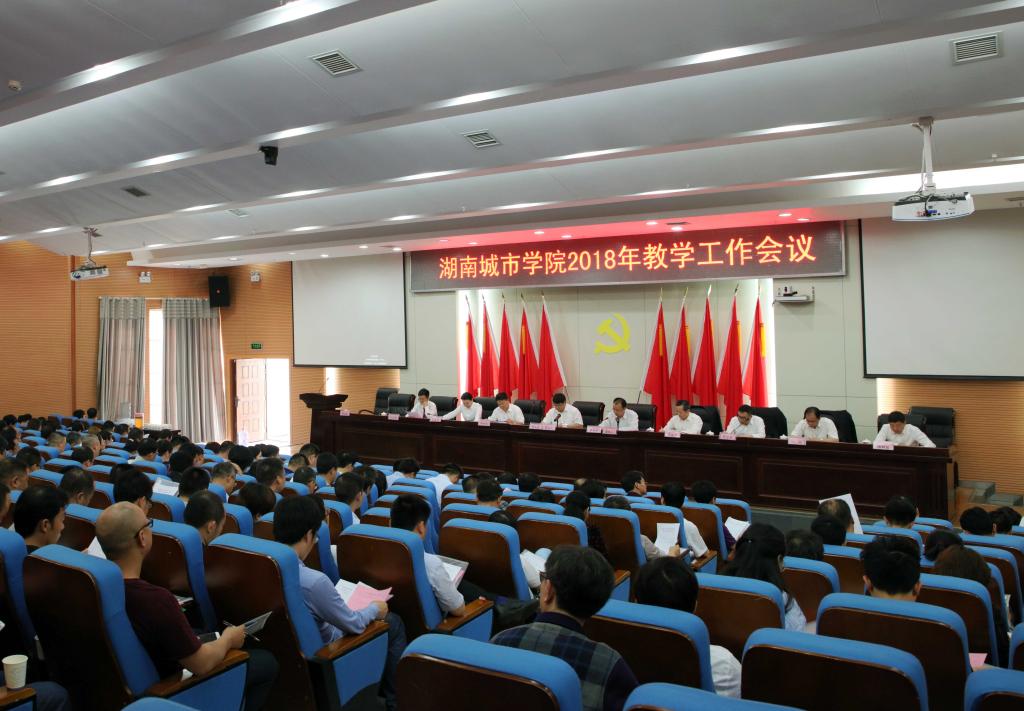(本网讯)4月21日,我校2018年教学工作大会在图书馆报告厅隆重举行。会议全面总结了过去三年的教育教学工作,谋划2018年教育教学的主要任务,全面助推本科教学工作审核评估。会议由党委书记罗成翼主持,全体校领导,中层干部、督导团团长、教学科研办主任、系(室、中心)主任、教务秘书,教务处、质控中心全体成员,二级学院教师、辅导员、学生代表共252人参加会议。