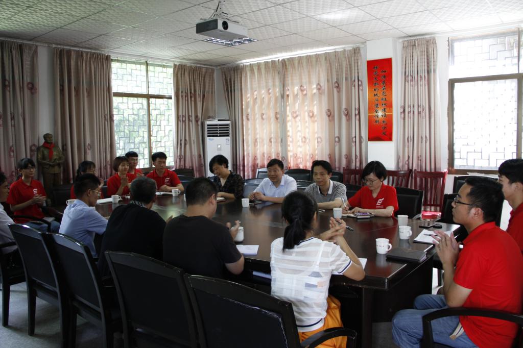 (本网讯)7月14日上午,副校长谭献良带领学生工作部、团委等部门负责人赴安化县梅山村看望慰问正在参加暑期“三下乡”社会实践活动的师生,并与师生亲切座谈。梅山村村支部书记罗功文及村委领导出席了座谈会。