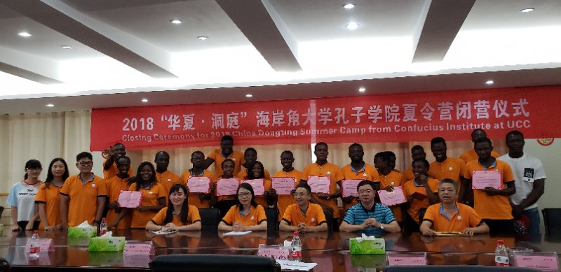(本网讯)2018年8月15日,2018年“华夏·洞庭”海岸角大学孔子学院夏令营闭营仪式在办公楼一会议室举行。副校长刘辉煌、海岸角大学孔子学院中方负责人、国际合作与交流处全体人员、夏令营全体学员参加了此次闭营仪式。
