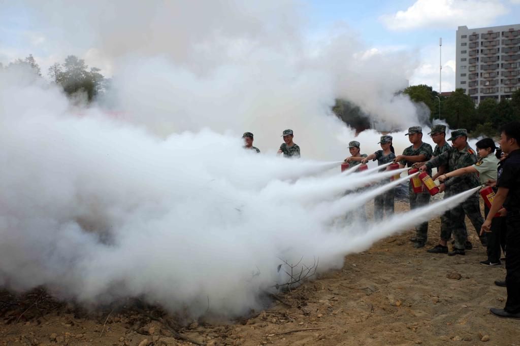 疏散演练结束后,专业消防人员对疏散演练进行了点评,现场讲解了安全知识及灭火器的使用方法,并组织部分学生进行了灭火器灭火演练。(文/图 博夕)