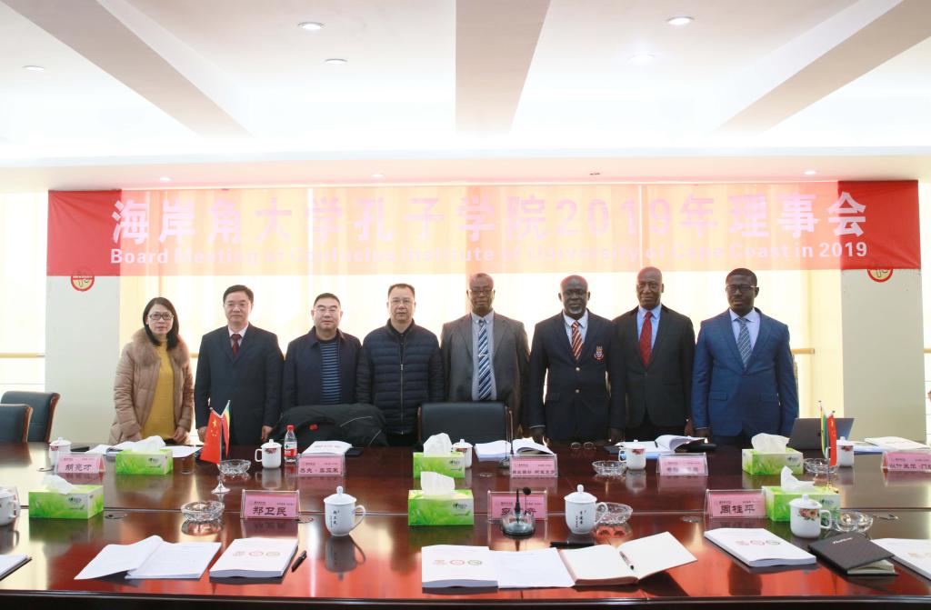 (本网讯)2019年12月6日下午,海岸角大学孔子学院2019年理事会在我校办公楼一会议室举行。校长、孔子学院中方理事会主席李建奇、副校长郑卫民、国际合作与交流处相关负责人,加纳海岸角大学人文与法律学院院长Francis Eric Amuquandoh、文学系系主任Kuame Osei Kwarteng、学术委员会主任Jeff Teye Emmanuel Onyame、孔子学院中方院长胡亮才、外方院长Ishmeal Mensah出席会议。会议由李建奇主持。