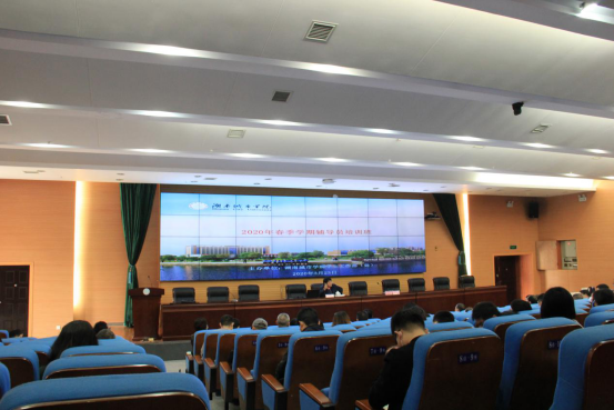 本网讯 2020年3月23—24日,2020年春季学期辅导员培训班在学校图书馆学术报告厅举行,党委书记罗成翼出席会议并讲话,副校长雷存喜主持开班仪式,学生工作部、招生就业处、团委全体人员和各二级学院党委(党总支)书记、副书记及全体辅导员参加。