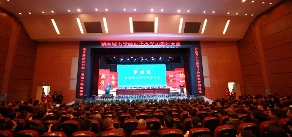 学校党委书记罗成翼致辞。他深情回顾了学校50年办学历程。合并前的两校艰苦创业、迎难而上,为学校发展积淀了厚实根基。学校初创者和历届领导者们白手起家,迎难而上,艰苦创业,坚守师范定位,培养了一大批名校长、名教师,为地方基础教育做出了重大贡献。突出城建特色,依托行业办学,对接中小城镇,为全省市县培养了大批规划建设人才,被国家教委确定为全国示范性高工专重点建设学校。新组建的城院抢抓机遇、融合奋进,为学校发展开启崭新征程。本世纪初,顺应高等教育体制改革大潮,米兰平台应运而生。两校合并伊始,快速推进深度融合。更新教育观念,转变教育模式,顺利实现从专科到本科的转型。2012年,第二次党代会明确了“三步走”发展战略,不断完善本科教育教学体系,人才培养质量不断提高,顺利通过了教育部本科教学合格评估,推进新校区二期工程建设,完成了两校区合一,办学质量与办学效益大幅提升。新时代的城院破立并举,改革创新,稳中快进实现了跨越式发展。2016年第三次党代会以后,学校顺应教育领域综合改革的时代潮流,自主全面系统地推进整体性重塑,以大改革推进了快发展。开展“三个发展”大讨论,制定“一二三五”发展战略;目标导向分类大发展,做强城建类学科、做大信息制造类学科、提质管理服务类学科、夯实基础类学科;破立结合推进大改革,一是破分而散,立精而集、专而能的机构调整与编制改革。将16个二级学院调整为12个。二是破身份限制,立业绩导向和核心指标导向的绩效分配与目标管理考核改革,激发干事创业活力。三是破守摊平庸,立能上能下,41名处级干部主动退出领导岗位,一批80后博士教授走上重要中层岗位。四是破封闭僵化,立校企(地)合作、产教融合的应用型人才培养模式改革,构建“1234”应用型人才培养体系。五是破粗而松,立细而实、紧而准的精细管理改革,开源节流创造近2亿效益。六是破传统滞后,立应用型、现代型制度体系的大学制度改革,推进治理体系和治理能力现代化。改革创新取得大成效。4年多来,新建运动场、和学生公寓,校园道路提质、美化亮化、教学楼栋改造等基本建设,职工待遇和幸福指数显著提高,获批“湖南省新增硕士学位授予单位立项建设单位”;高水平通过了教育部本科教学工作审核评估;跻身湖南省“高水平应用特色学院”行列;2020年,列入湖南省本科第一批次招生,实现了几代城院人的梦想。