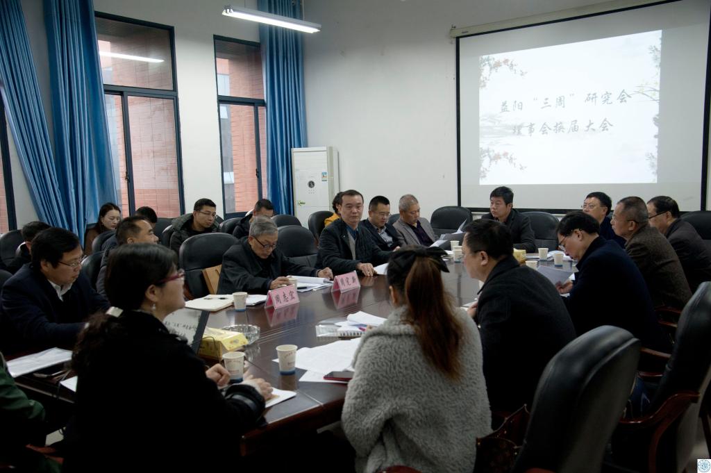 本网讯 2021年3月20日上午,益阳“三周”研究会理事会换届会议在我校管理楼509会议室举行。副校长雷存喜出席会议并讲话,益阳“三周”研究会名誉会长周宪新,益阳市社科联主席周志宏,新任会长傅建安,以及“三周”研究会会员30余人参加会议。