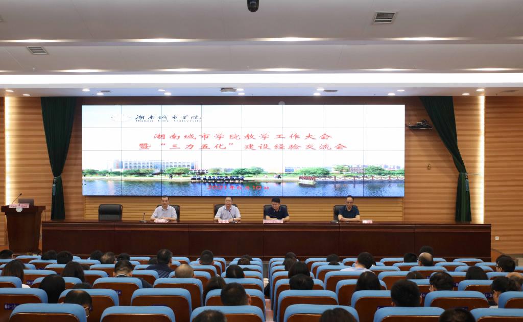 本网讯(通讯员 向博毅)2021年6月10日下午,学校在图书馆报告厅召开了2021年教学工作大会暨“三力五化”建设经验交流会。党委书记李建奇出席会议并讲话,校长汤放华主持会议,副校长雷存喜以及教务处负责人、二级学院院长和教学副院长、系(室、中心)主任及代表出席会议。