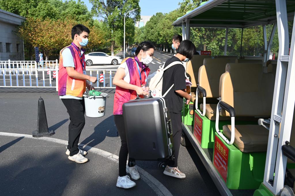 据学校保卫处相关负责人介绍,因学校疫情防控要求,今年所有新生家长不能进入校园,为此学校在校内启用了6辆循环中巴和8辆循环电瓶车,与校外迎新大巴对接接送学生,各路线围绕校园形成一个闭环,最大限度确保了学生身体健康和生命安全。