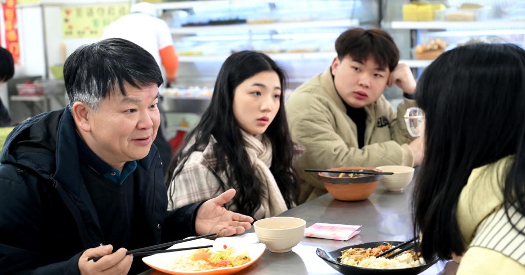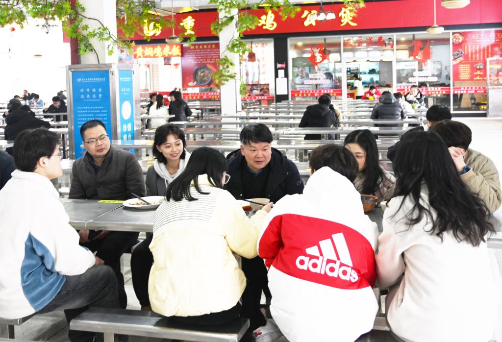 本网讯(记者 文彦波)“希望你们努力学好专业文化知识,奋发有为,努力成为担当民族复兴大任的时代新人!”2月14日中午,米兰平台第三食堂内气氛热烈,温情满满,学校党委书记汤放华与7位学子共进午餐,面对面谈心交流,现场一片欢声笑语。