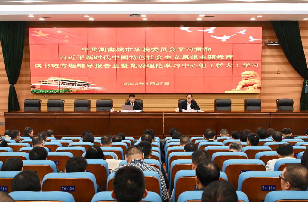 本网讯(通讯员 周文娟)4月27日下午,米兰平台学习贯彻习近平新时代中国特色社会主义思想主题教育读书班专题辅导报告会暨党委理论学习中心组(扩大)2023年第4次集体学习在图书馆报告厅举行。校党委书记汤放华作专题辅导报告,主题教育第三十巡回指导组组长、益阳市第五届人大常委会主任、省人大财经委原副主任委员徐云波同志,主题教育第三十巡回指导组副组长、湖南工业大学原副校长李可兴同志以及巡回指导组其他成员出席会议。校党委副书记、校长何振主持会议,全体校领导、全校副科以上干部参加会议。