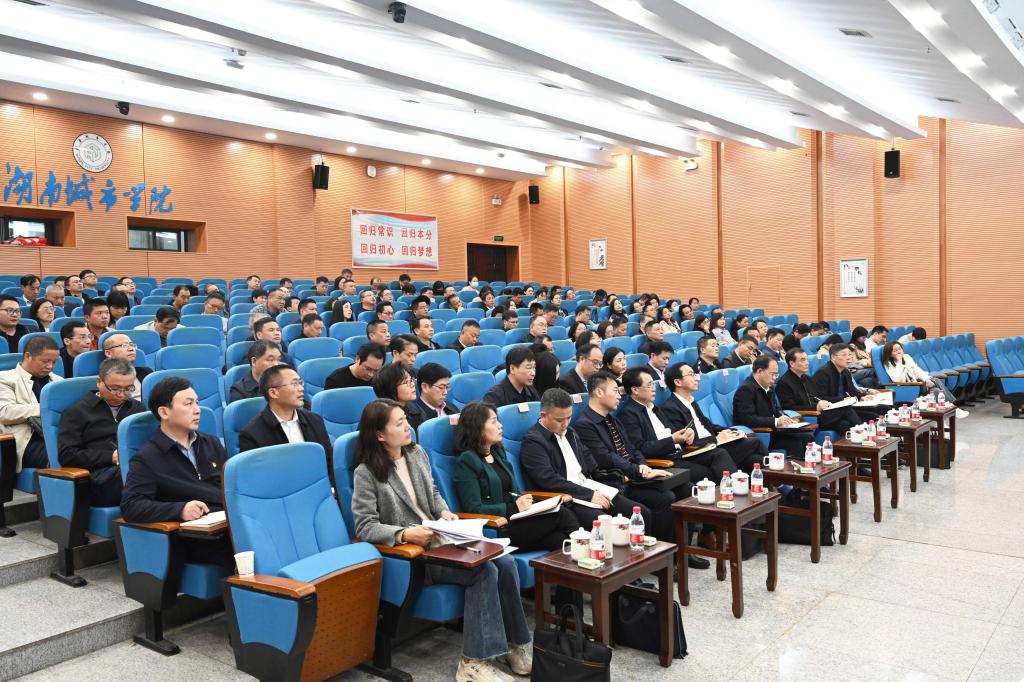 报告会前,汤放华传达了省委书记沈晓明在学习贯彻习近平新时代中国特色社会主义思想主题教育读书班开班式上的动员讲话暨辅导报告精神。省委书记沈晓明从理论框架体系、时间空间维度、方法论角度和结合湖南实际四个方面阐述了如何深刻理解把握习近平新时代中国特色社会主义思想,并对湖南如何抓好这次主题教育指明了方向、提出了要求。汤放华表示,省委举办这次读书班,主要考虑是不折不扣落实好中央关于主题教育的部署,“关键少数”带头“充电蓄能”,从而带动全省广大党员干部层层跟进。学校主题教育专题读书班成员也要切实发挥“关键少数”作用,先学一步、深学一层,带动学校广大师生党员层层跟进,推动学校的主题教育取得实实在在的成效。