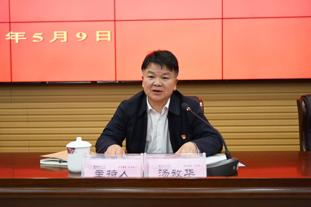 本网讯(记者 文彦波)5月9日晚,学校学习贯彻习近平新时代中国特色社会主义思想主题教育专题辅导报告会在图书馆报告厅举行。湖南省科协党组书记、常务副主席王瑰曙以“实施科教兴国战略,强化现代化建设人才支撑”为题作了辅导报告。校党委书记汤放华主持并讲话,在家的校领导、副科以上领导干部参加。