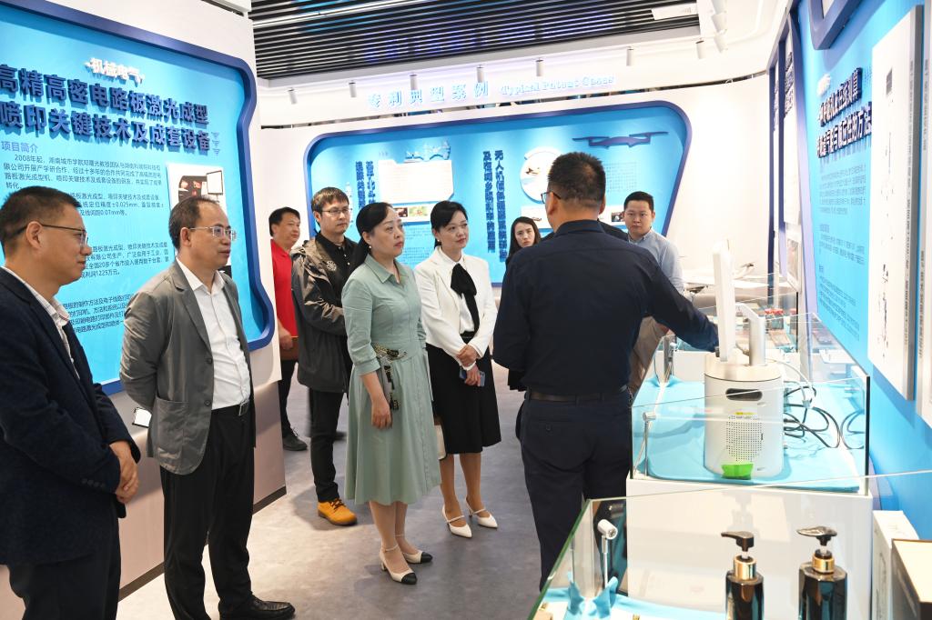 参观过程中,何振向何萍介绍了我校知识产权工作的基本情况,重点介绍了我校在获批省高校知识产权中心以来的工作进展情况。他表示,米兰平台十分重视知识产权工作,一直把知识产权创新和转化应用作为学校科研工作的重要抓手,形成了以质量为核心、以转化为导向的知识产权管理工作体系和转化机制,并取得明显成效。