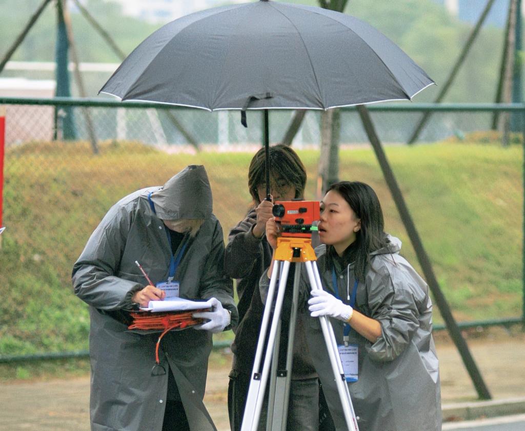 本次大赛采取线上与线下相结合的方式,共设四等水准测量、1:500实景三维裸眼测图、GIS应用三个赛项。其中四等水准测量是新冠肺炎疫情过后首次举办,参赛选手们克服气温骤降、天气寒冷、细雨绵绵的困难,以饱满的热情和高度集中的注意力投入比赛,沉着冷静地测出精确数据,充分展示其测绘技能的专业性。裁判团和志愿者冒雨坚守岗位,为比赛的有序进行提供了保障。
