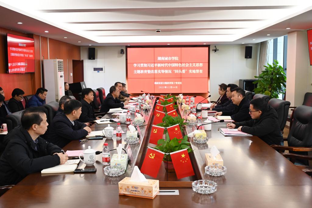 本网讯(通讯员 孙智坤)12月4日,湖南省委主题教育整改整治情况“回头看”工作第十督查组组长李可兴,组员李苍松、詹玮、左森方来校开展学习贯彻习近平新时代中国特色社会主义思想主题教育整改整治情况“回头看”督查工作。督查组采取查阅台账、座谈了解、访谈交流等方式,对学校主题教育整改整治工作完成情况进行逐项核查。