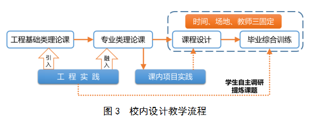 学院拥有10个固定的设计教室,紧密结合工程实践。工程基础类理论课引入工程实践应用,专业核心类理论课围绕工程实践项目组织教学,训练学生的工程思维,同步课程设计计算,在设计周进行优化与工程表达;毕业设计要求学生结合工程实践进行选题调研,实施时间场地教师三固定模式,见图3~图5。
