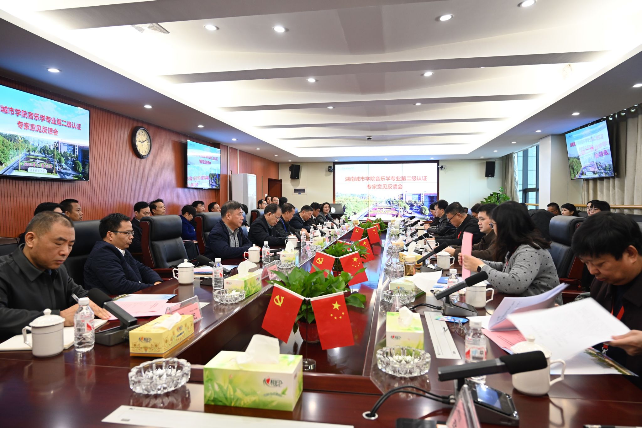 本网讯 11月29日上午,我校音乐学专业第二级认证专家反馈会在办公楼一会议室召开。专家组全体成员、学校全体在家校领导出席会议。