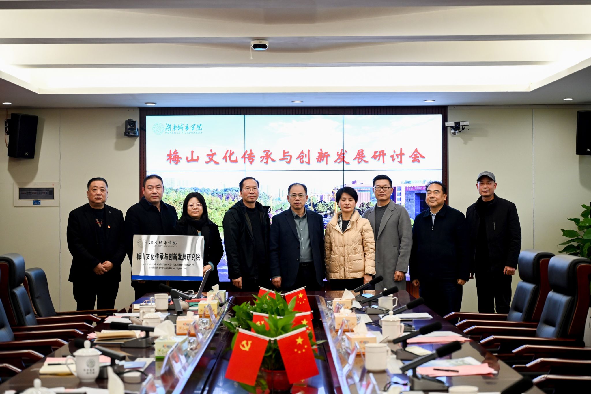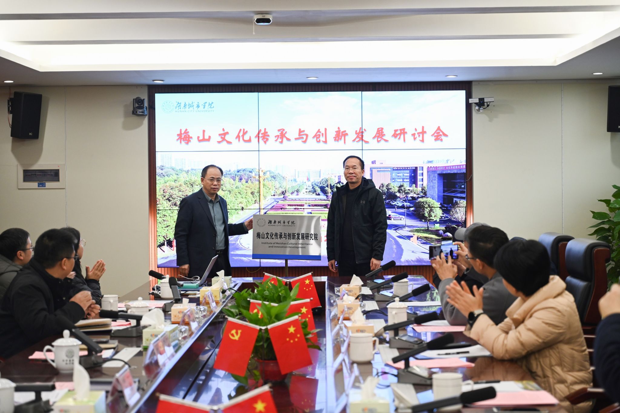 会上,我校科研处处长胡科宣读了成立梅山文化传承与创新发展研究院的相关文件。在与会人员的共同见证下,何振与陈宇翔共同为我校梅山文化传承与创新发展研究院揭牌。
