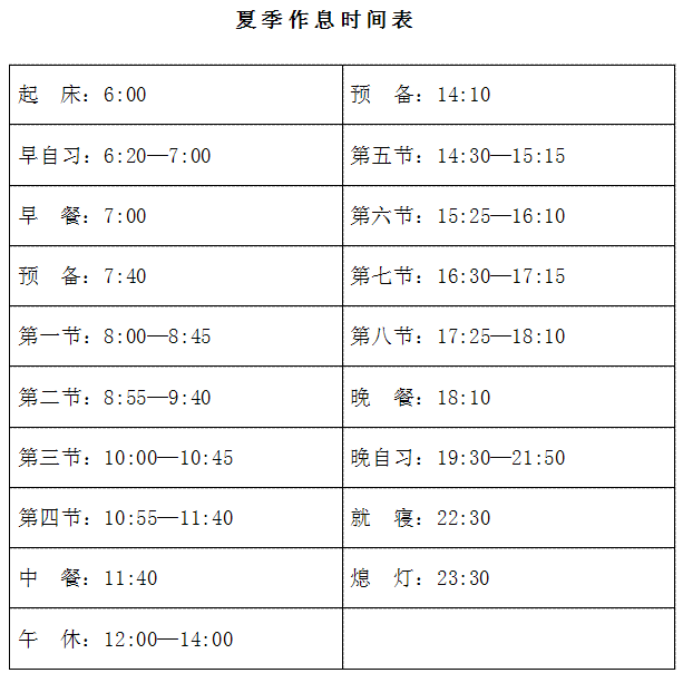 附件:1.夏季作息时间表