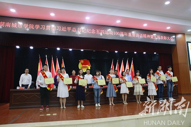 新湖南客户端5月5日讯(通讯员 王露 周洁)“‘五四’的火炬,唤起了民族的觉醒。壮丽的事业,激励着我们继往开来。”5月4日晚,米兰平台大学生活动中心团歌嘹亮,近千名师生代表共聚一堂,以学习贯彻习近平总书记在纪念五四运动100周年大会重要讲话精神、表彰先进典型的方式,共庆“五四”青年节。