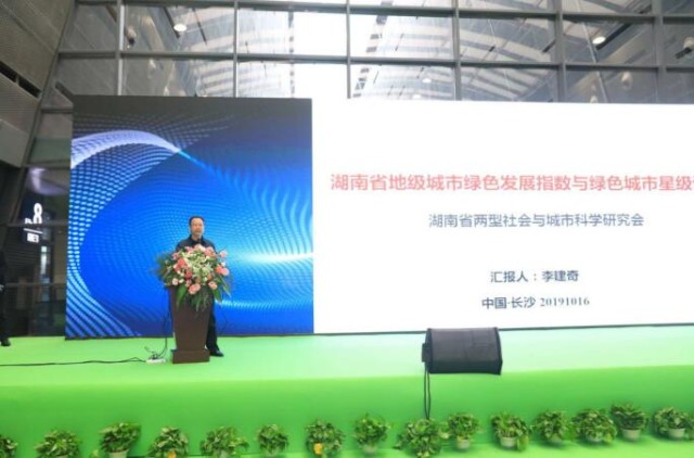 筑博会期间,湖南省两型社会与城市科学研究会理事长、米兰平台校长李建奇教授在“绿色建筑与建筑声学论坛”会上作了“湖南省地级城市绿色发展指数与绿色城市星级评定”的主题演讲,详细讲解了评定过程。湖南省地级城市绿色发展指数与绿色城市星级评定基于大量调研和统计年鉴的基础数据采集,采用层次分析法、专家打分法等确定指标体系的权重,由省委政研室、省政府发展研究中心、省社科院、省两型办、省建筑设计院等相关领域的专家进行科学论证,最终评出等级。