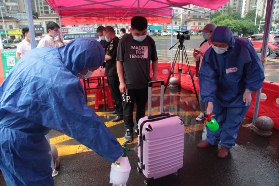 校方表示,该校特意安排了专车迎接返校学生,以严防交叉感染。报到现场,在工作人员的引导下,提着行李的学生们佩戴好口罩,严格按照学生返校报到流程有序报到入校。学生们排队保持一米以上间距,出示校园卡或学生证、电子健康卡(绿码)。