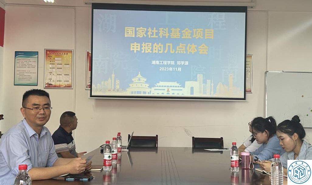 为把握学术前沿选题热点、掌握社科基金申报书撰写方法技巧,提升我校教师科研水平,2023年11月4日下午15点至18点,我校邀请湖南工程学院马克思主义学院院长邓学源教授为广大教师作了一场国家社科基金申报辅导讲座。
